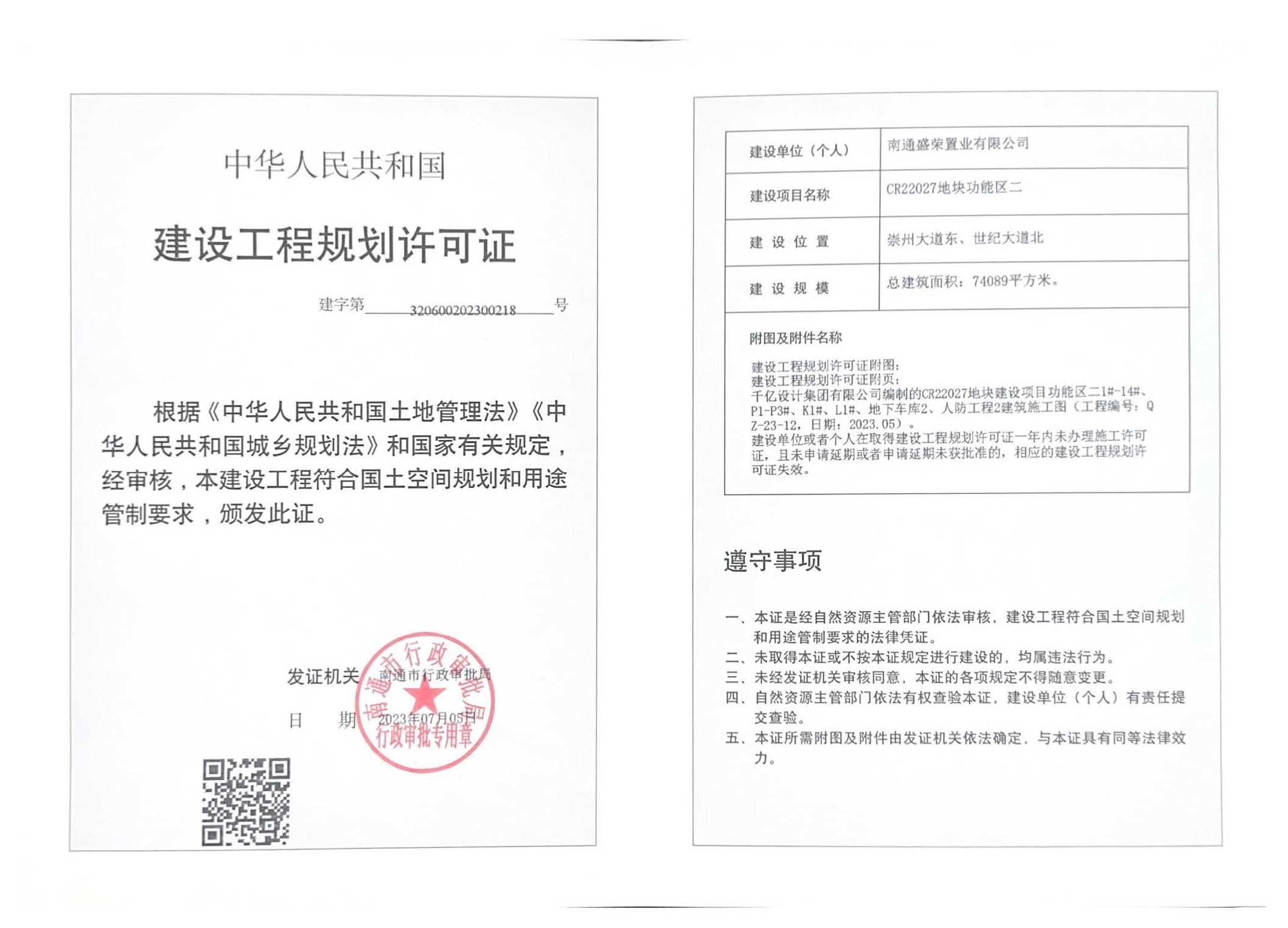 2023年7月5日,沿海集團盛和房產(chǎn)創(chuàng)新區(qū)CR22027地塊項目南區(qū)取得工程規(guī)劃許可證,意味著項目向正式開工邁進了一大步,為項目有序推進奠定了良好基礎(chǔ)。